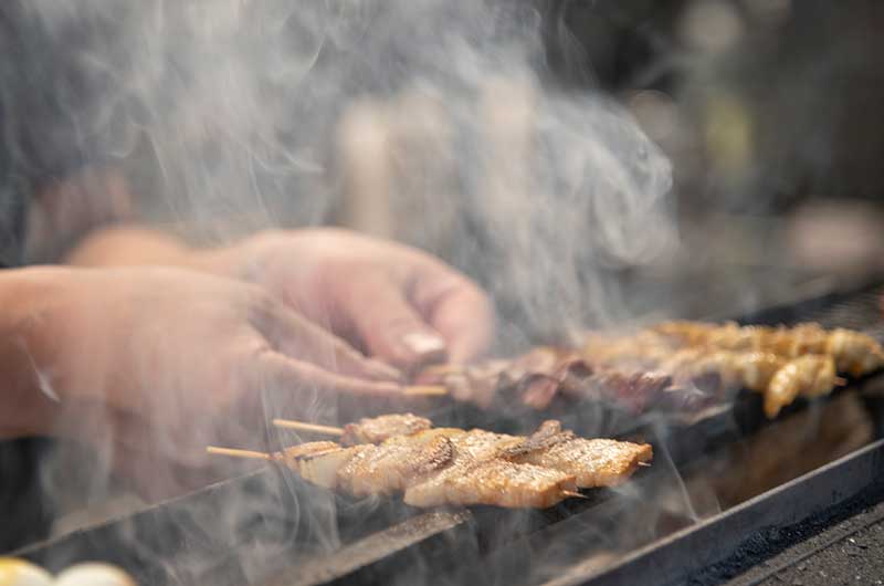 備長炭で焼き上げるこだわりの串焼きは外はパリッ 中はジューシー!